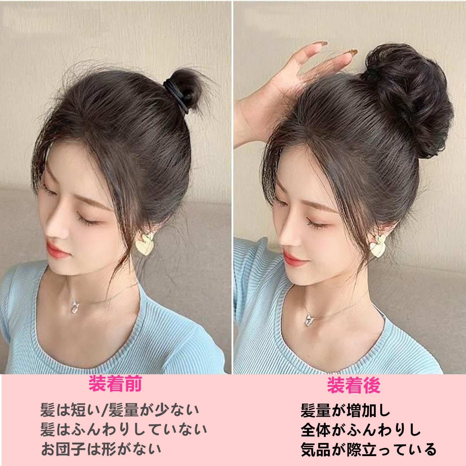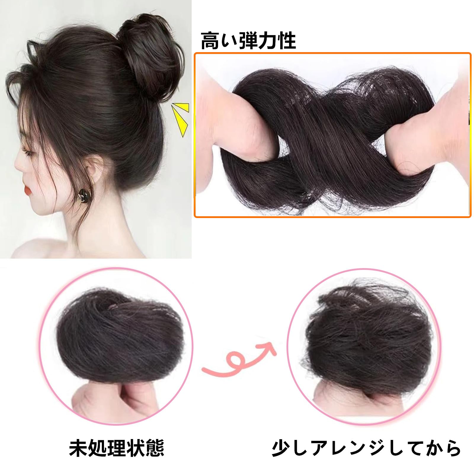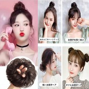 お団子ウィッグ シュシュ 巻き ワンタッチゴム式 つけ毛 ボリュームアップ 髪飾り おしゃれ 装着簡単 自然感 可愛い お団子ヘア かつら 和装 着物 浴衣 結婚式 卒業式 七五三 成人式 おだんごウィッグ レディース 子供 (ダークブラウン)