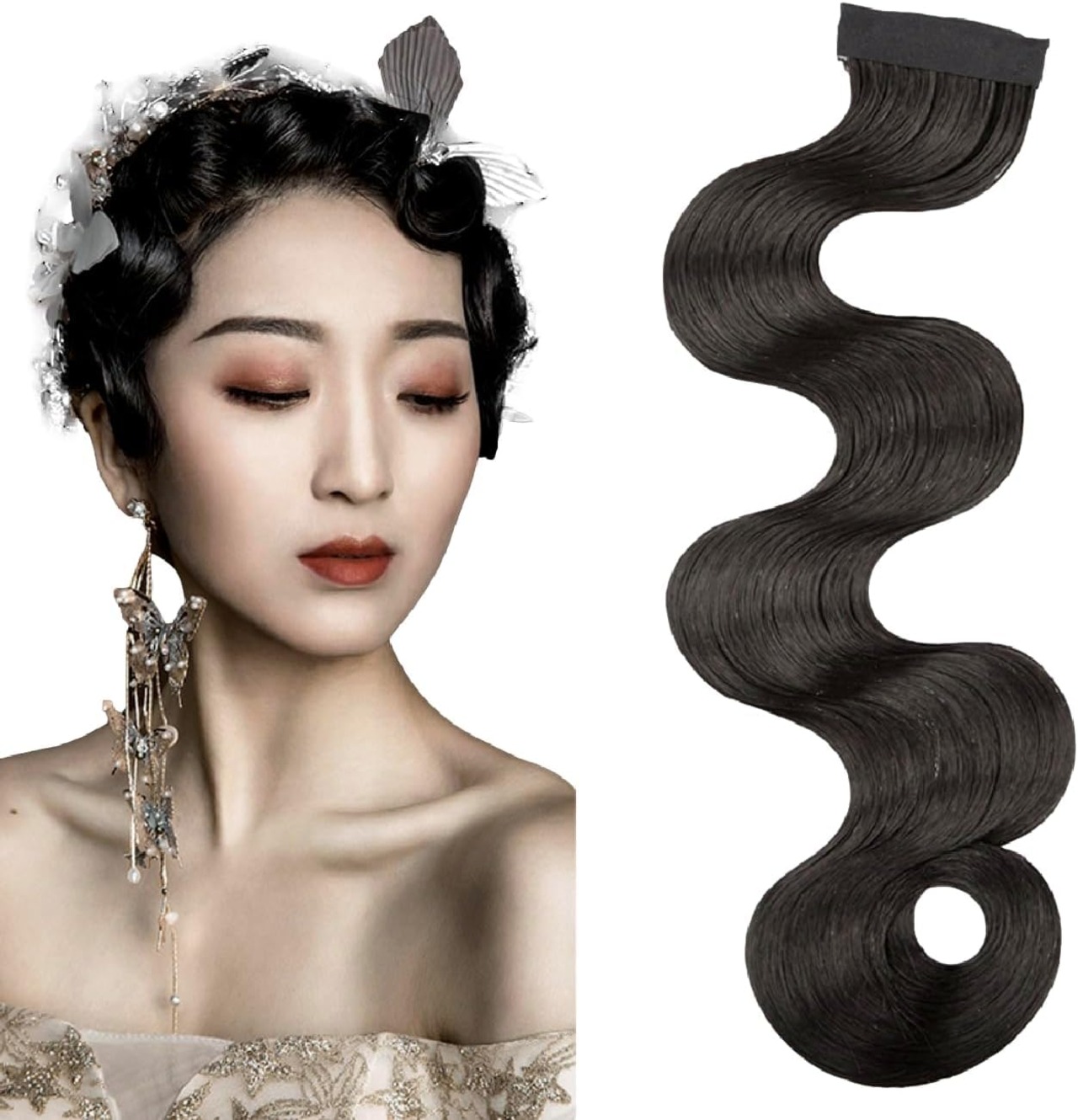 フィンガーウェーブ ウィッグ ダンス 社交ダンス パーティー つけ毛 ヘアーオーナメント[J's select] (ダークブラウン)